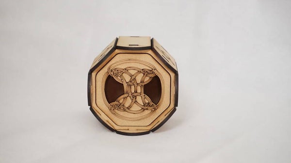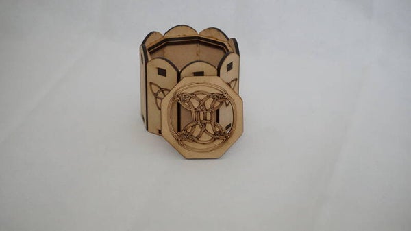 Dit leuke doosje met Keltische knopen is een ronde vorm gesneden.